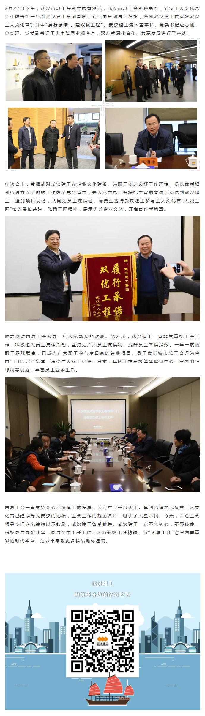 市總工會領(lǐng)導(dǎo)考察武漢建工 送錦旗感謝集團(tuán)建雙優(yōu)工程